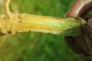 شکل3. بروز بیماری قارچی فوزاریومی در محل طوقه